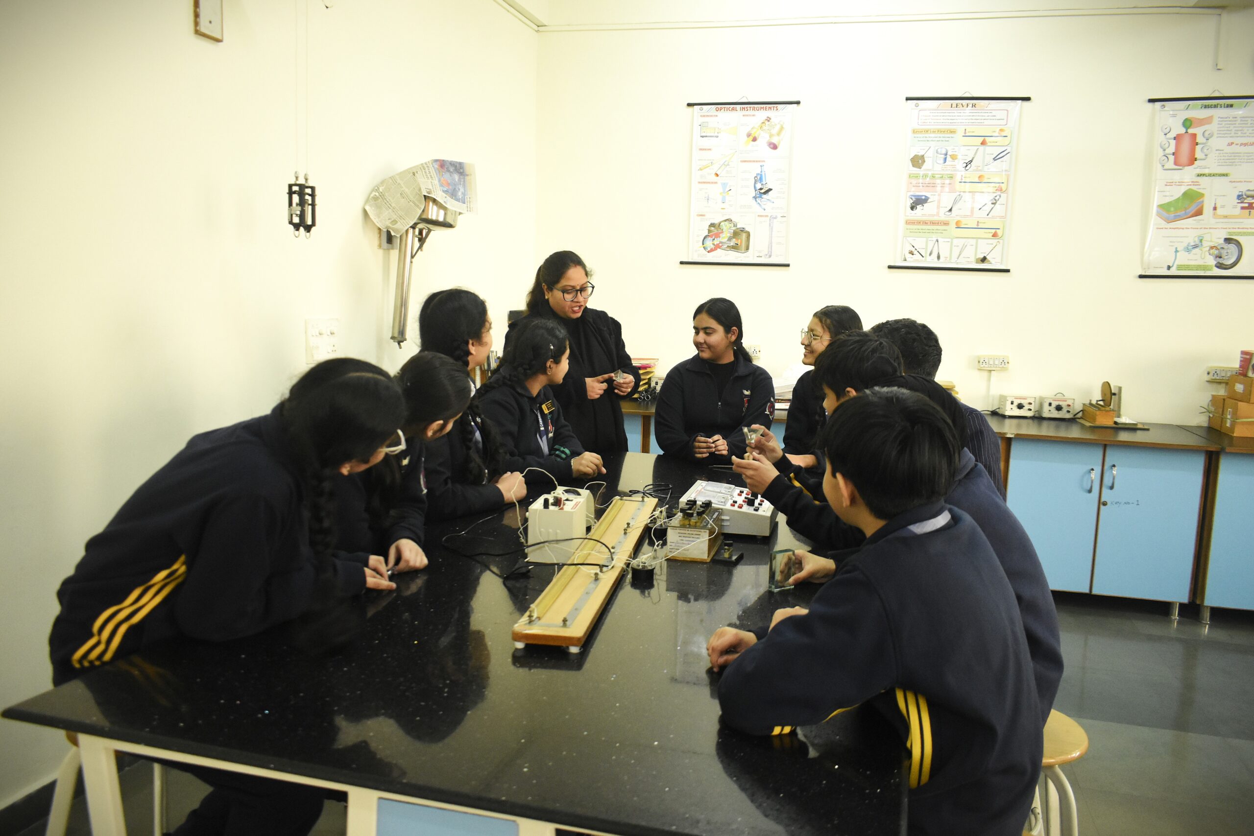 The equipment for Physics allows students to perform experiments and study various principles and laws. The lab is very well furnished and is well equipped with all the apparatus that are necessary enough to impart practical knowledge to the students and help them understand the importance of physics and its applications in day to day life.